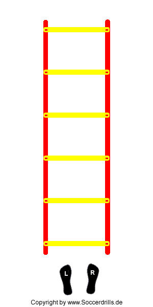 Es wird langsam schwerer. Nur in jedem zweiten Fach wird ein ganzer Schritt ausgeführt. Wichtig dabei ist, dass nach dem Schritt das Fach immer wieder mit dem rechten Fuß verlassen wird. Achte jetzt auf hohe Konzentration und steigere das Tempo immer weiter.