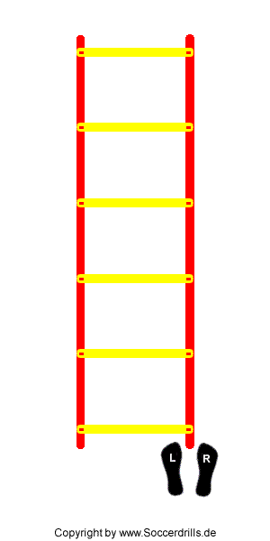 - Die Übung beginnt auf der linken Seite der Leiter.