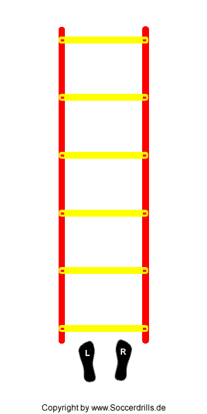 Zwei Sprünge mit geschlossenen Beinen vorwärts und einen zurück. Versuche das einmal mit hohem Tempo. Bitte übertreibe es nicht, der Übungsablauf wird sehr anstrengend, wenn er intensiv ausgeführt wird. Könne Deinen Spielern Pausen.