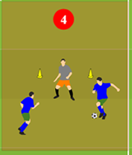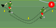 Ein kleiner Slalomparcours, die Spieler dribbeln hin und her. Auf Beidfüßigkeit achten!