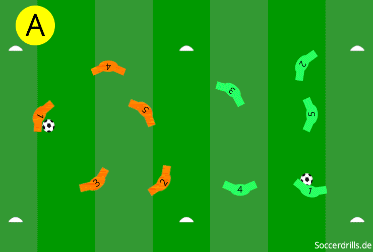 - Die Spieler dürfen niemals abschalten und sollen den ganzen Übungsraum nutzen.