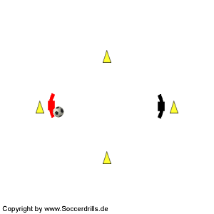 Material: 1 Ball pro Gruppe, 4 Hütchen oder Bodenmarkierungen zur Orientierung.