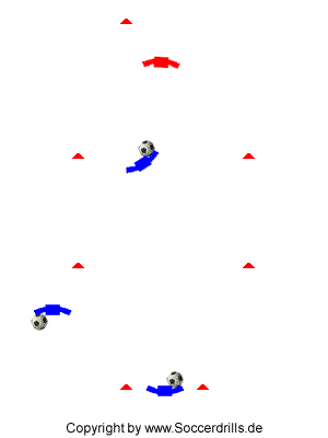 "Two in one", Dribblings und Pässe beim Aufwärmen im Fußballtraining.