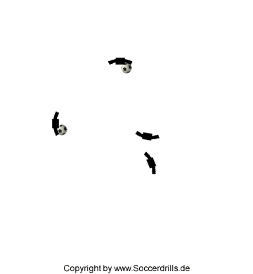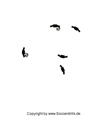 Im Verlauf der Übung werden die Spieler automatisch immer weiter zusammenrücken, denn dies verkürzt die Laufwege. Entweder ist dies so gewollt, oder du musst die Spieler daran erinnern, die Abstände einzuhalten.