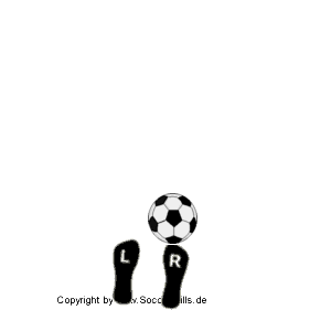 Führe den Ball mit der rechten Sohle seitlich hinter das linke Bein. Nach der Drehung hast Du den Ball dann gleich wieder auf dem rechten Fuß. Die Ball wid immer wieder dorthin gespielt, wo er herkommt (Wende 180 Grad).