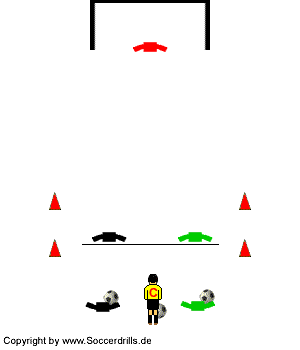 Feldgröße: Nach Leistungsstand, Abstand Übungslinie - Tor mindestens 18 Meter.