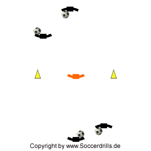 Material: Pro Spieler 1 Ball, 1 Hütchentor (Markierungstor) ca. 3 Meter breit.