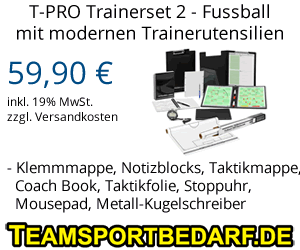 Die Trainingsformen sind ab der Alterskasse F-Junioren geeignet und sogar für ein motivierendes Fußballtraining. Wir liefern inklusive praktischer Aufbewahrungsbox, in der die Trainingskarten sauber und trocken aufbewahrt werden können und jederzeit auf dem Trainingsplatz griffbereit sind.