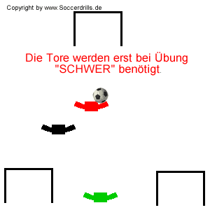 Material: 1 Ball, 3 kleine Tore für die weiterführende Übung.