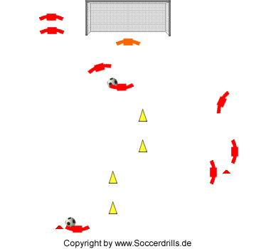 Feldgröße: Nach Leistungsvermögen. Abstand zum Tor beachten, die Spieler benötigen Raum.